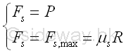 The dry friction force can be grouped as static friction with no relative motion between the contact surfaces and kinetic friction with relative motion between the contact surfaces. By experiment, if there is no relative motion between the contact surfaces, a maximum value of static friction force Fs,max for a given pair of contact surfaces is found when the surface of solid body is just about to move. And the maximum static friction force Fs,max is proportional to the normal reaction acting on the contact surfaces. Imply