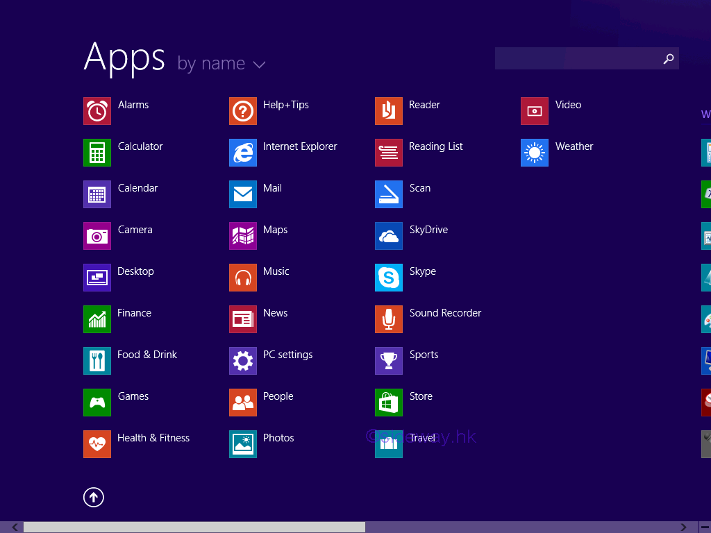 Microsoft Windows 8.1 FeaturesMicrosoft Windows 8.1 New GUI FeatureThe startup screen of Microsoft Windows 8.1 is changed from a classical desktop screen with a taskbar to a Start Screen with apps and a collapsed charms bar on the right side. In fact, the Start Screen is a tab screen of the Startup Screen. TheStartup Screen has another tab screen called Apps Screen. The classical Desktop screen is only designed as an app application. When one or more apps are opened, a hidden start button will be activated at the bottom left corner. If one or more apps other than the active app are opened, a collapsed app switching list together with a start button at the bottom will then be available on the left side which is activated by a hidden app button on the top left corner. The hidden button can also be used to activate the latest closed app or the first app of the apps list. GUIs of Microsoft Windows 8.1The GUI of Microsoft Windows has five typical types of interfaces